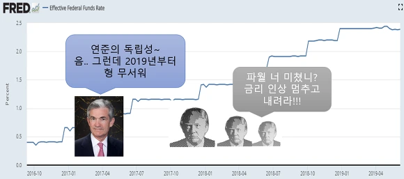 [트럼프 대통령 취임 후 금리를 계속 올리던 연준 하지만 2019년부터는... ]