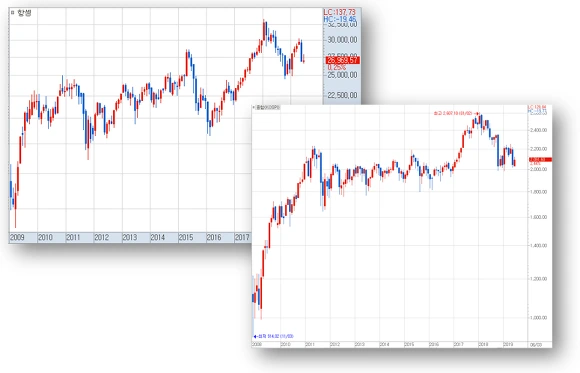 [2009년 이후 홍콩항생지수와 한국종합주가지수 추이는 비슷하게 움직이다]