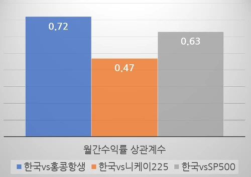 [한국증시와 홍콩증시는 주요국가들보다도 높은 상관계수를 보이다]
