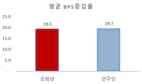 이 중 민주당이 집권한 시기 동안 버크셔 해서웨이의 평균BPS증가율(수익률로 이해하셔도 괜찮겠습니다.)은 연평균(단순) 19.7%였고 공화당 집권시기에는 연평균(단순) 19.5%였습니다. 민주당집권한 때나 공화당집권한 때나 큰 차이가 없습니다.