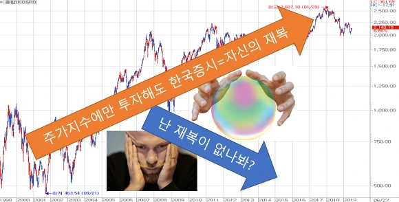 지금까지 투자실패만 반복하여 재복이 없다고 생각하는 개인투자자라도 주가지수에 투자하게 되면 운명이 한국증시와 일치하게됨을 앞서 언급드렸습니다. 그런데 지금까지 한국증시 흐름이 아쉬운부분이 많지요? 손해만 보는 박복에서 벗어나긴 하였지만 재복이라 하기에는 미흡한 부분이 많습니다.