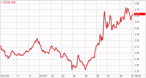 [국고채 10년 물 금리 추이, 2013년 당시 국고채 금리는 상승 쪽으로 방향을 터닝하다]