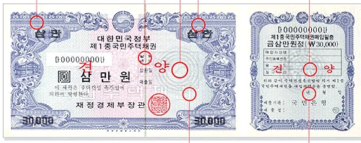 [대한민국 국민주택채권 1종 견양, 참고 : 한국예탁결제원 웹사이트]