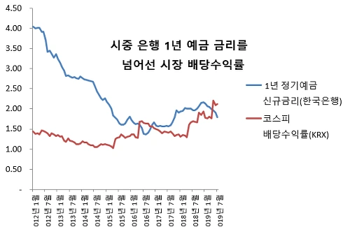 [코스피 배당수익률은 이미 시중은행 1년 예금금리(신규)를 넘어섰다]