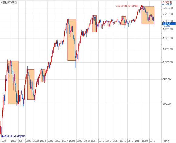 투자심리는 결국 시장흐름에 영향을 받게 됩니다. 특히 대표지수인 종합주가지수의 낙폭수준은 투자심리에 중요한 바로미터가 되곤 합니다. 과거부터 20여년을 보아오며 주가지수 낙폭수준에 따른 투자자들의 반응을 기억하고 기록하고 있습니다. 오늘은 다시 그 기억을 꺼내어 글 초반에 간단히 정리 해 보도록 하겠습니다.