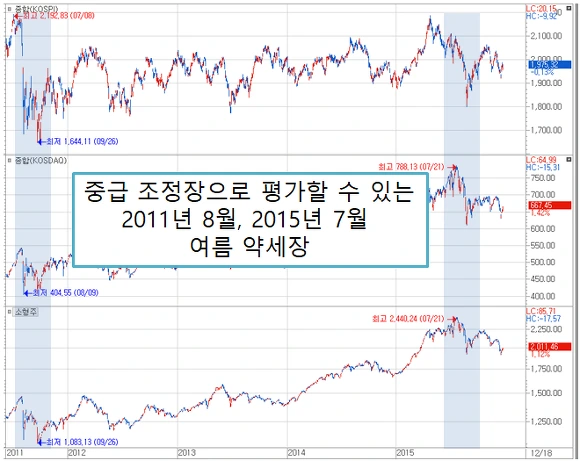 ㅇ 2011년과 2015년 여름에 있었던 제법 깊은 중급 조정장.