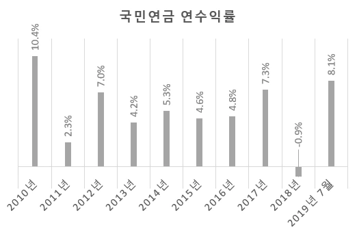[자산배분전략을 취하는 국민연금의 2010년대 이후 연수익률 추이]