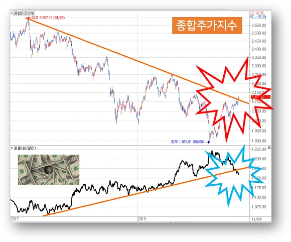 [11월 4월 오늘 종합주가지수와 달러원 환율은 의미있는 추세를 돌파하였다]