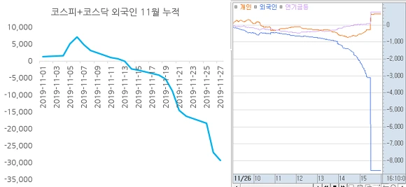 [외국인 11월 누적순매매추이와 11월 26일 어제 동시호가에 쏟아진 리밸런싱 매물]