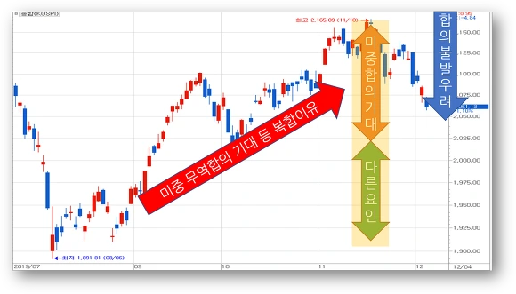 생각 해 보면, 지난 가을 이후 증시 상승에 있어 미중 무역합의 기대치는 상당부분을 기여하였습니다. 그런데 그 기대치가 사라지면서, 11월 중순부터 하락세가 나타나고 있습니다.