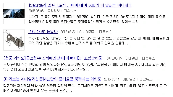 [자료 참조 : 다음 뉴스 "매미,애미" 검색]