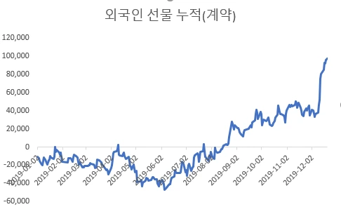 [2019년 외국인의 선물 누적 순매매 추이]