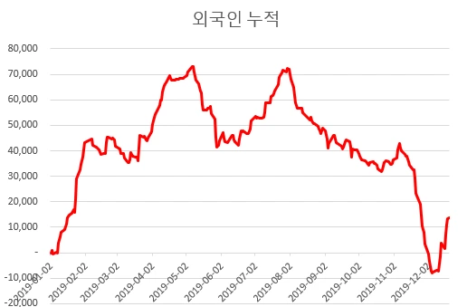 그런데 최근 미중 무역전쟁이 일단락 되는 분위기 속에 외국인의 매수세가 심상치 않습니다.