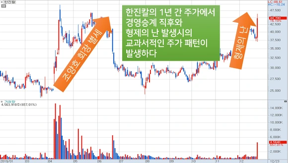 [한진칼에서 나타난 형제의 난과 오너 별세 후의 교과서적인 주가 패턴]