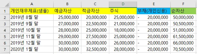 [개인재무제표 샘플 양식]