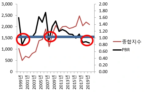 그리고 주가지수 2100p 이하에서는 주가지수 2250p대에서 매수를 회피하던 국민연금 등의 연기금의 자산배분전략에 의한 매수세가 다시 살아나게 됩니다.