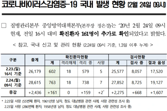중국쪽에서는 되려 확진자수가 감소세에 들어와 수백명 단위로 줄어들어 소강국면에 접어든 것을 생각한다면, 지금 한국에서 발생되고 있는 상황은 안타까울 따름입니다.