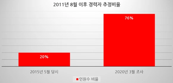 ㅇ 경력기간 분석 : 2008년 연말 이후 경력자 2015년 52%, 2020년 3월 : 85%