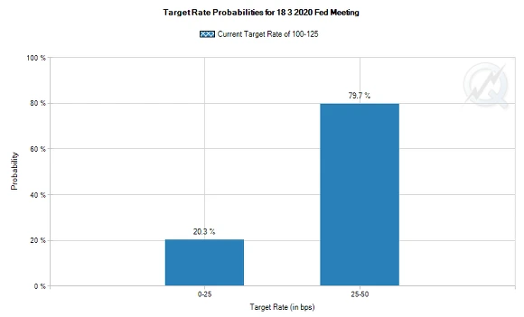 [3월18일 FOMC회의에서 파격적인 추가 금리 인하를 시장은 기대하고 있다. 사진참조 : FED Watch]