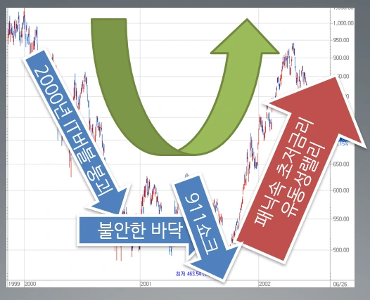 ㅇ 현재 급락후 반등은 시나리오 참고 2. 길었던 U자패턴, 2000년 IT버블 붕괴 후