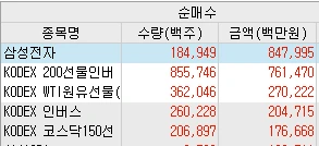 하지만 그 금액이 삼성전자 매수한 금액보다도 더 큰 금액을 매수하였다는 것은 그야말로 네이키드 인버스 매수한 것이라 할 수 있습니다.