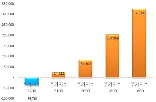 그런데 국민연금의 국내주식비중 목표치 17.3%에서 최근 +5%p까지 범위를 늘릴 수 있다는 뉴스가 나왔습니다. 증시 하락이 발생할 경우 더 사들이겠다는 것입니다. 만일 5%p까지 넓힌 22%로 잡을 경우 위의 표 금액은 상상 이상으로 커지게 됩니다.