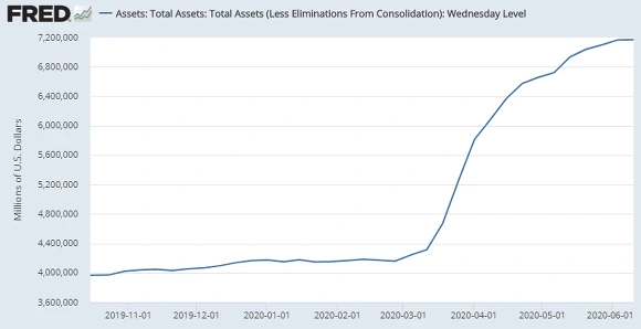 [연준의 자산규모 추이 5월 이후 증가속도가 급격히 사라졌다. 자료 : FRED]