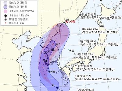 [태풍 솔릭의 확률 반경, 자료참고 : 기상청 날씨누리]