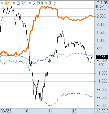 [오늘 장중 증시가 출렁이자 개인은 공격적으로 매수세를 강화하였다]