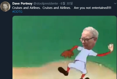 심지어 그는 워런버핏을 비아냥하는 영상을 트위터에 올리기도 하였습니다.(6월30일자) 워런버핏이 항공주를 매도하면 자신은 즐기겠다는 내용이긴 한데 매우 도발적이다보니 워런버핏을 좋아하는 분들이 보시면 혈압이 급상승하실 수 있습니다. 추가로 "버핏은 훌륭한 분이지만 주식투자에서 이미 한물 갔다"라고 트윗을 남겼다고 쿨럭....