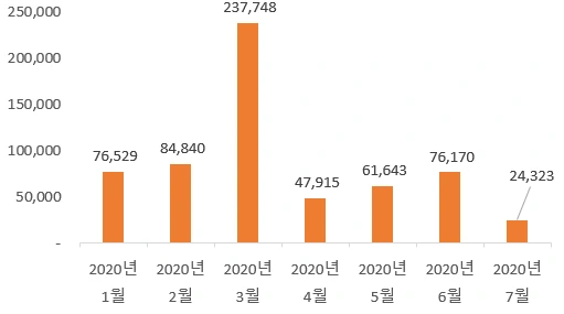이제는 개인투자자의 자금이 급증하면서 여기저기로 자금의 흐름이 이어지고 개별종목들은 한풀이를 하듯 상승하기 시작합니다. 3월 말부터 6월초까지 무차별 상승이 한차례 휘몰아쳤고 6월에 잠시 소강국면에 들어갔지만 7월 또 다시 개별종목들이 휘몰아치고 있습니다.