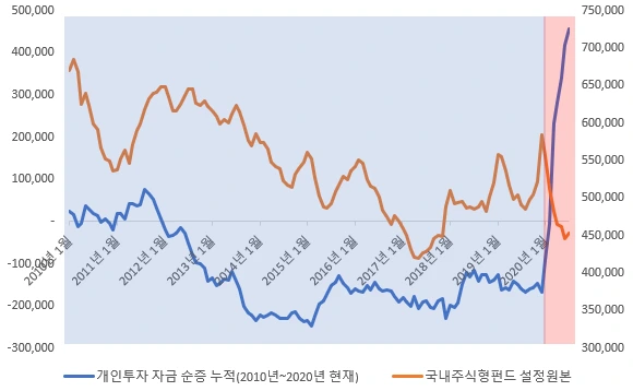 [2010년대 내내 유출된 개인자금과 펀드자금 하지만 2020년에 개인이 컴백하다]