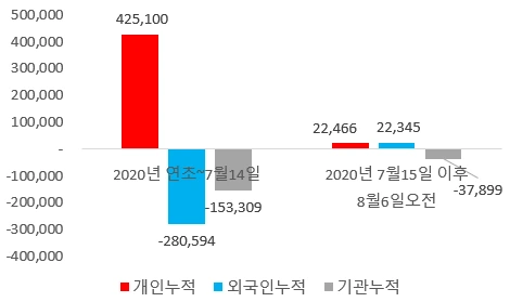 [올해 개인의 지속적인 매수 속에 7월15일 이후 외국인 매수 가세]