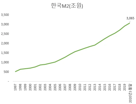 [중요 유동성 통화지표 M2는 5월 말 기준 3065조원에 이르렀다, 자료참조 : 한국은행]
