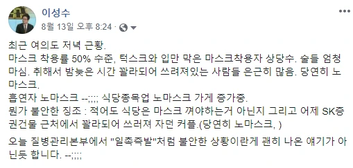 [연휴 전 8월 13일 최근 코로나에 대한 군중의 모습에 답답함을 느끼며 SNS에 적은글]