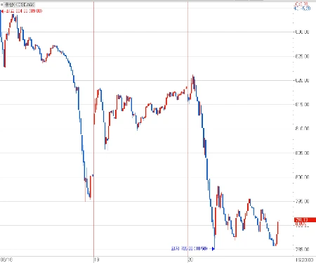 [8월 18일에서 20일 코스닥지수 5분봉 차트 속에서 쏟아지는 매물을 보다]