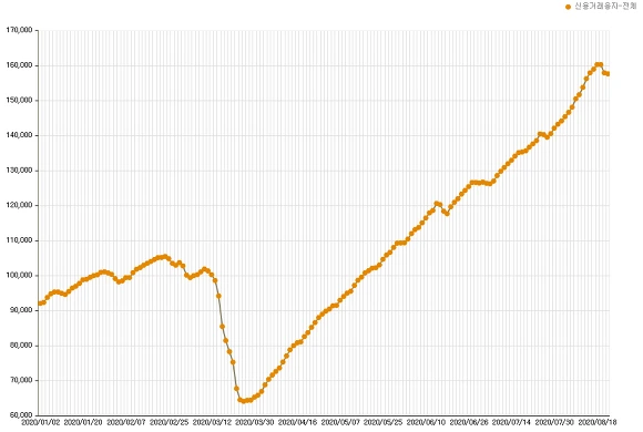 매달 2조원씩 증가하여 5개월 만에 10조원 증가한 신용융자 규모에 스탁론과 같은 다른 주식관련 직접대출 자금이 신용융자에 30%수준인 것을 미루어 짐작하여본다면 이 부분도 3~4조원은 증가하였을 것입니다. 여기에 마이너스 통장 등 은행신용대출로 주식투자를 한 자금들까지 감안한다면 3월 이후 증가된 빚투 자금 증가분은 최소 15조원에서 2분기 가계대출 증가규모 26조원 감안시 최대 30조원까지도 추정 해 볼 수 있을 것입니다.