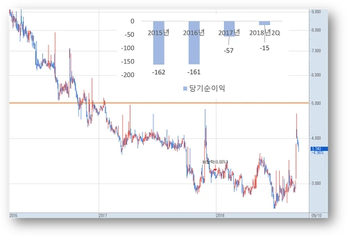 [액면가 미달 종목 사례, 수년간 적자가 지속되었다]
