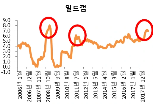 [최근 일드갭은 최고치 수준에 이르렀다]