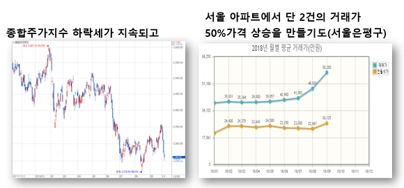 어렵게 찾을 필요도 없이, 올해 한국증시와 한국 서울 부동산 시장에서 극명한 차이를 쉽게 찾아볼 수 있습니다.