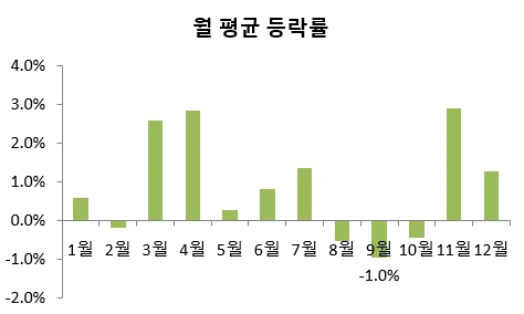 [99년~2017년 코스피지수의 월평균 등락률, 어? 10월이 가장 크게 하락한 달이 아니네?]