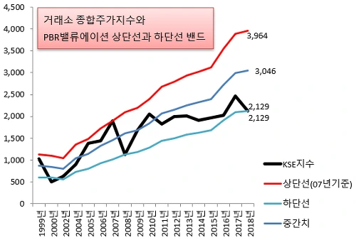 [시장PBR밴드 추이, 어제 기준 코스피 지수는 과거 위기 수준까지 들어왔다]