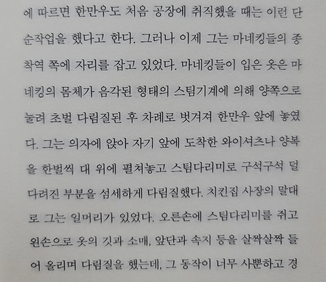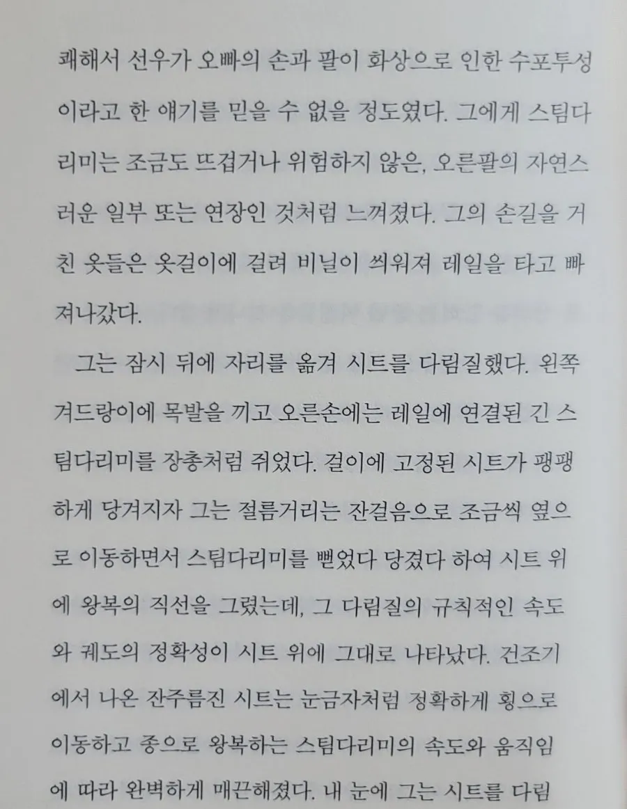 다만, 권여선 작가 특유의 묘사는 한토막이 있었는데 다음과 같다.