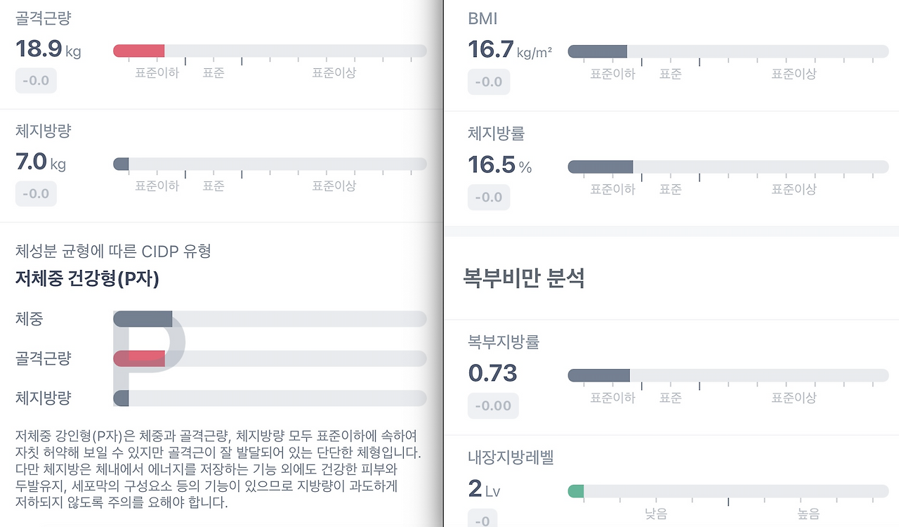 나는 마른 편이다. (BMI 16.7/*보통 BMI는 키와 몸무게로만 측정하는데 허리둘레를 추가하는 것이 정확함)