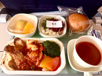 아니나 다를까 이번에도 귀가 뚫리지 않아 이륙하고 얼마 안 가 코피가 터졌다. 토마토 주스를 마시고 있었는데 처음에는 주스인 줄 알았다가 따뜻함을 느끼며 맛있게(?) 기내식을 먹었다. 앞으로 토마토 주스를 마실 때마다 코피 맛이 기억날 거 같다.