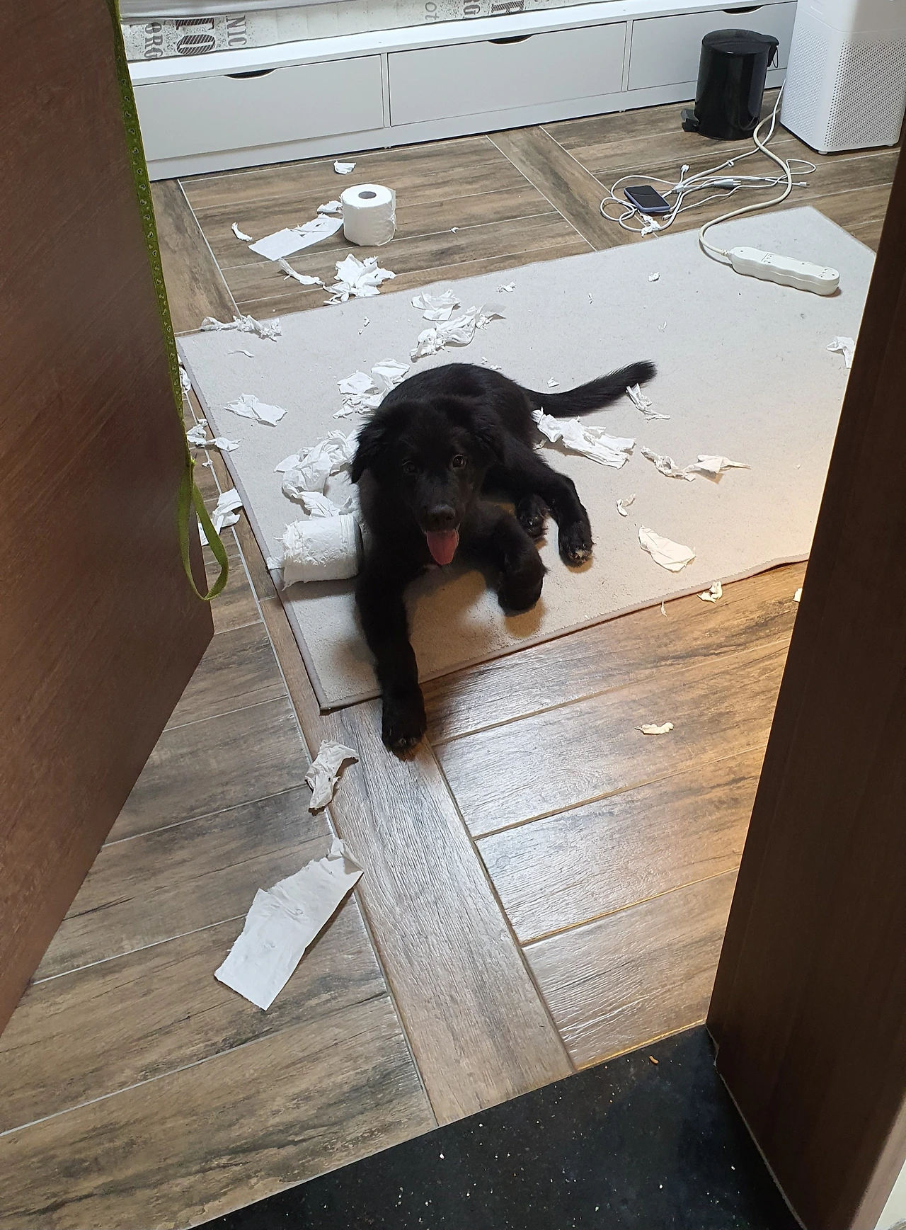 또 어디서 가져왔는지 다른 방에 있던 휴지까지 모아 와서는