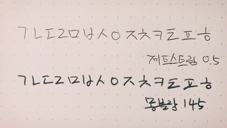 다른 펜에 비하면 그렇게 얇은 편은 아닙니다. 오히려 평범한 수준이지요. 그래서 입문하시기 편한 측면도 있습니다.
