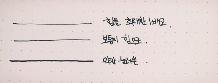 저는 펜에 있어서는 굉장한 마니아와 무관심한 분 사이 정도에 있습니다. 남들보다 필기구에 더 관심이 있는 정도겠네요. 따라서 리뷰의 눈높이는 '펜에 관심이 약간 있으시거나, 필기구가 요즘 멋져 보인다'라는 분이 되겠습니다.