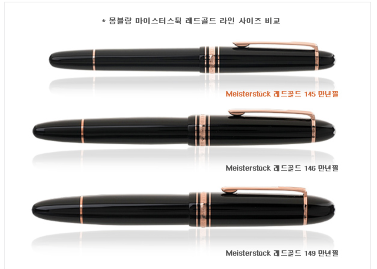 몽블랑 145는 여성분이나 약간 얇은 펜을 선호하는 분께 추천드립니다. 만년필다운 두툼한 느낌은 146 이상으로 가셔야 합니다. 대략 아래 정도입니다.