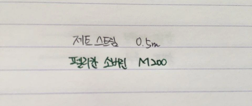 저의 M200은 EF촉입니다. 가장 얇게 나오는 촉인데요. 일본 만년필 회사(파이롯트, 세일러 등)의 EF와 비교하면 굵은 편입니다. 보통 일본의 F가 독일의 EF로 보시면 되겠습니다. 그래도 각 회사별로 닙과 잉크 흐름에 따른 굵기 차이는 크니 꼭 시 필하시고 구매하시길 권합니다.